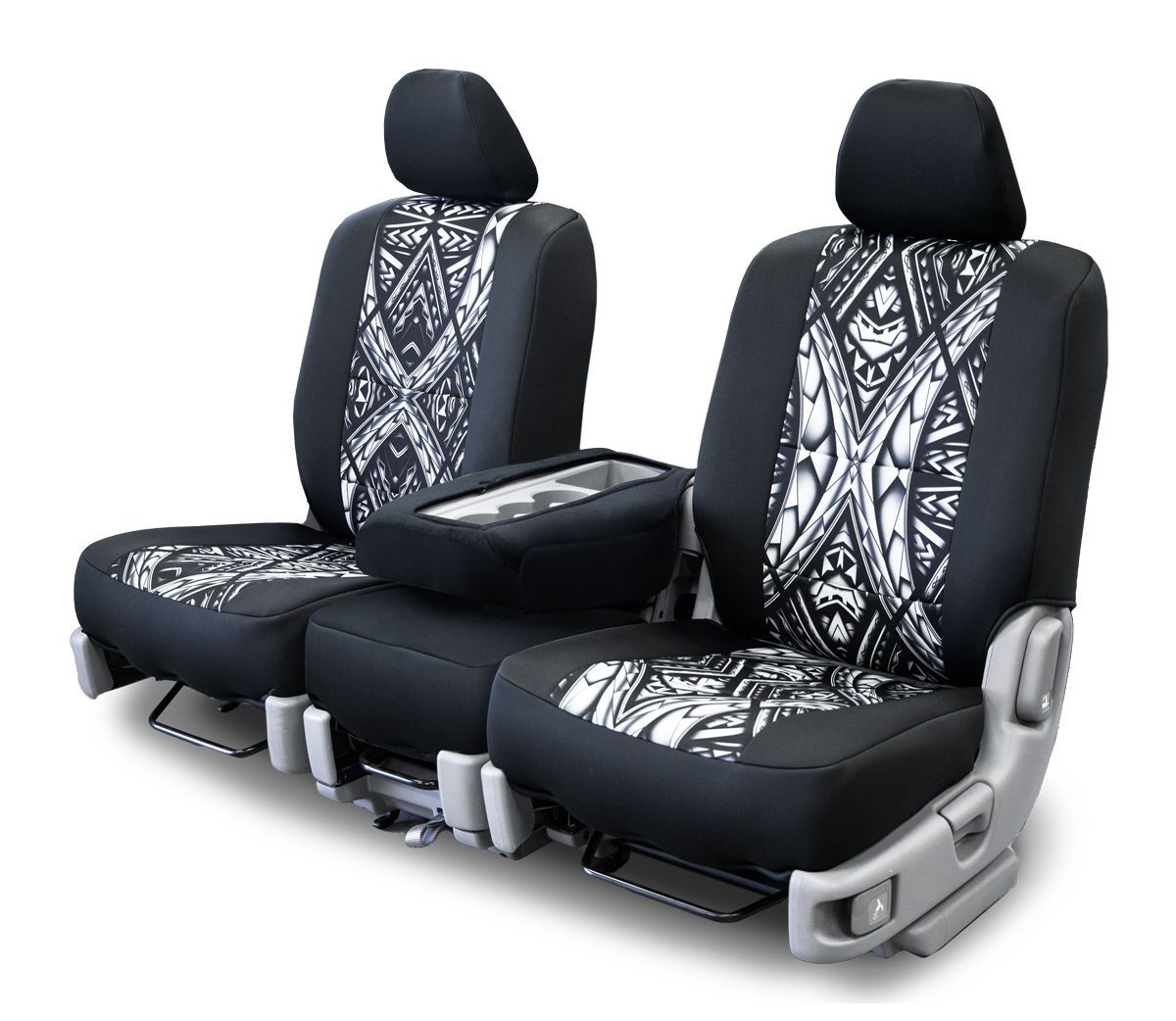 Infuse your vehicle with the rich, cultural artistry of our Tribal Polynesian seat covers. Inspired by traditional Polynesian patterns, these covers showcase an intricate design that bring a unique, bold aesthetic to your interior. Tribal Polynesian covers protect your seats while letting you express a deep connection to island heritage and style.  Designed for Seat Covers Unlimited by local Polynesian artists.