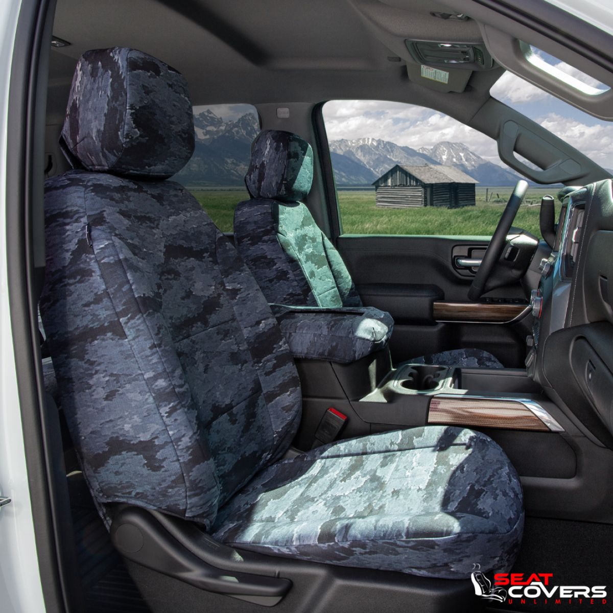 Our A-Tacs Camo seat covers provide a tactical edge with advanced camouflage patterns. They’re tough, water-resistant, and perfect for those who want a sleek, stealthy look to their interior. Designed for rugged conditions, these covers keep your vehicle’s interior protected while sporting that flash of tactical camouflage.